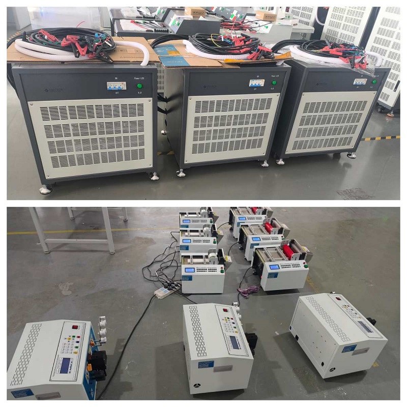 The supplied equipment includes positive electrode insulation sticker machines, double-sided spot welding machines, cutting machines, aging cabinets, and heat shrink machines, providing a comprehensive solution for cylindrical battery pack assembly.